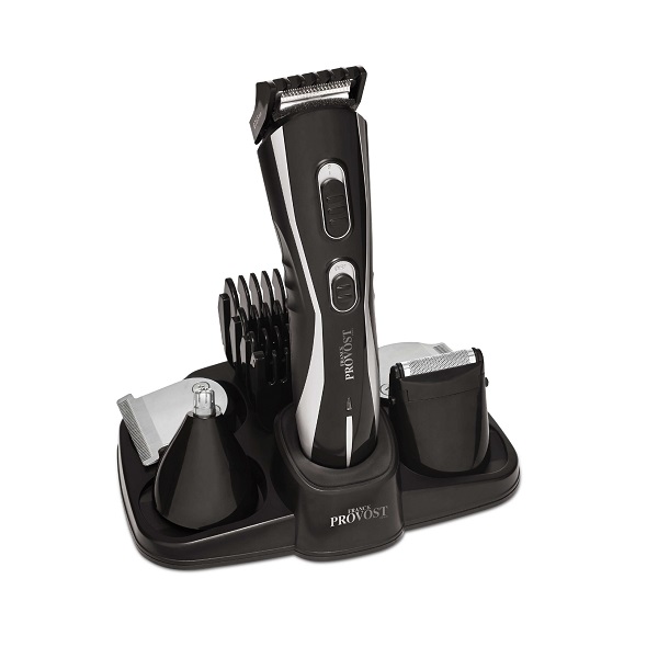 – 5 sabots de tailles différentes :1 sabot ajustable 5,6,7,8 mm pour lame en U pour le rasage de la barbe et 4 sabots 3,6,9,12 mm pour lame T pour le rasage des cheveux et du corps.