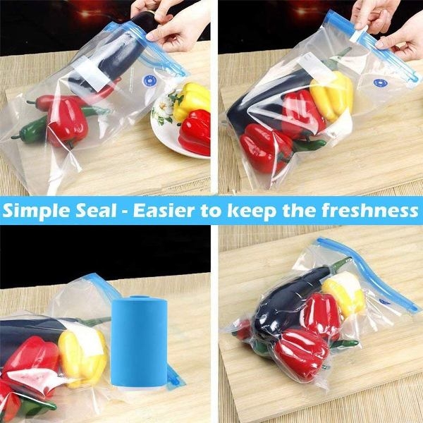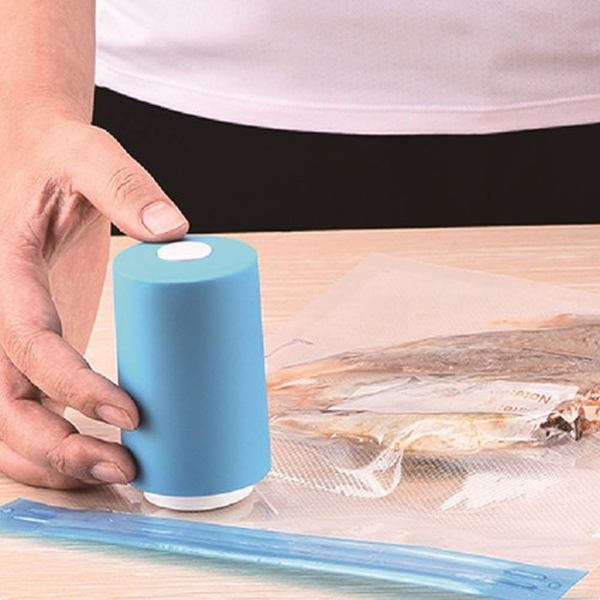1. Placez le mini-scellant sous vide sur le cercle bleu (valve à air) du sac sous vide.