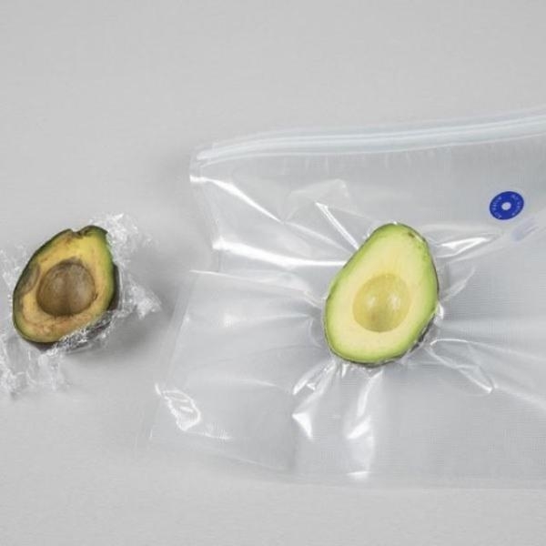 2.Mettez le sac sous vide à plat, appuyez sur l’espace vide pour éliminer l’excès d’air, puis appuyez sur la glissière et faites-la glisser pour créer un joint étanche.