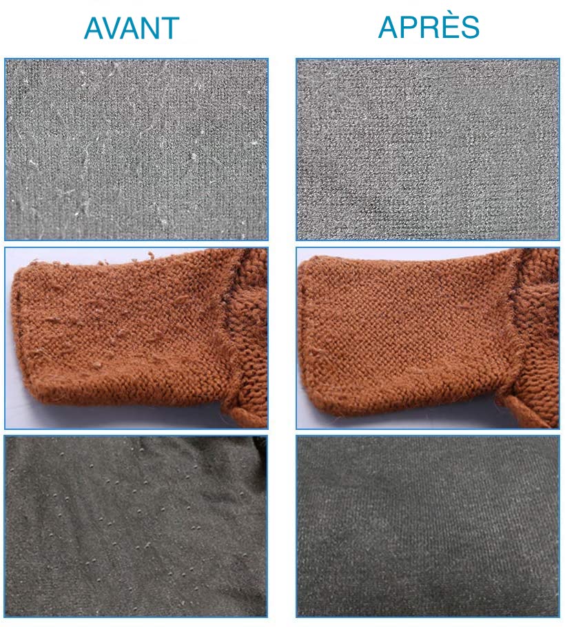 – Produit extraordinaire pour enlever les peluches sur les vêtements pour le rendre aussi brillant et neuf que les vêtements originaux