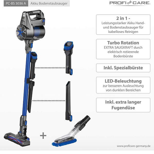 Aspirateur sans fil ProfiCare 22,2V main et sol, batterie Li-Ion