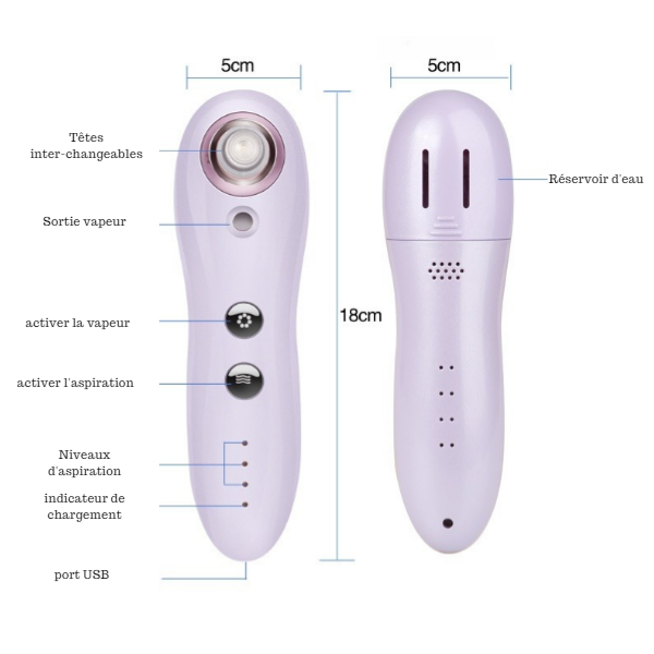 Aspirateur de points noirs et pulvérisateur vapeur (Visage)