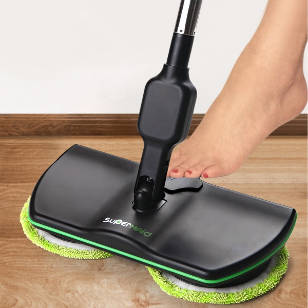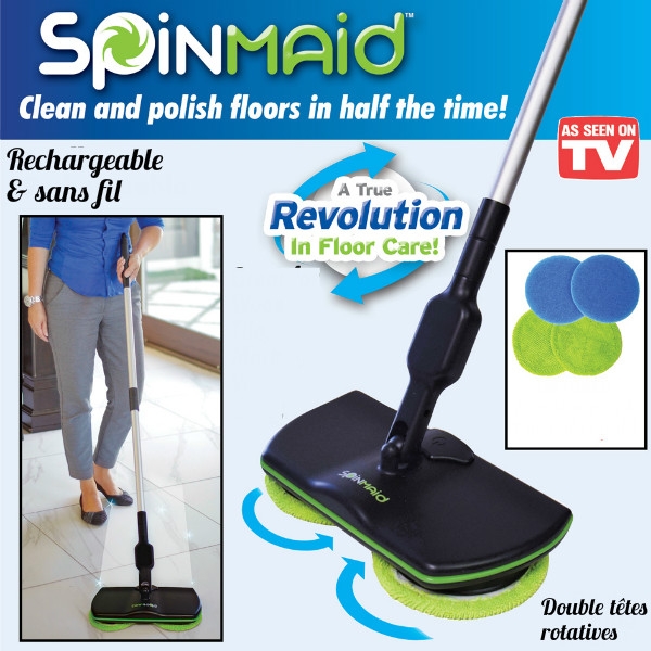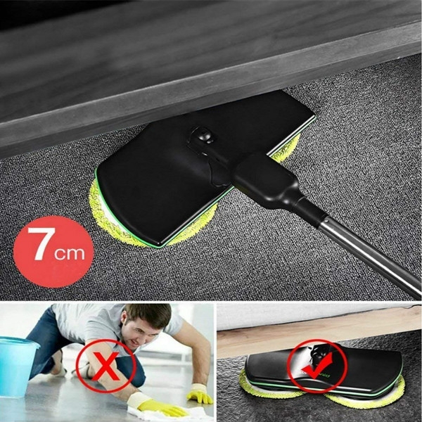 -Le nouveau balai rotatif électrique, avec sa conception spéciale combinée avec 3 éléments différents, maintient votre plancher impeccable tout en essuyant, polissant et frottant.