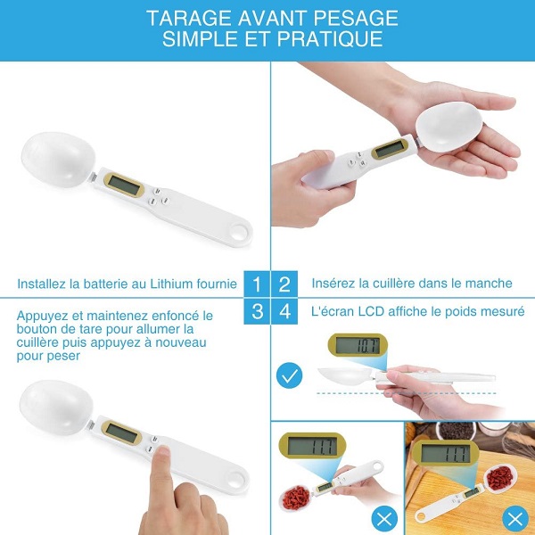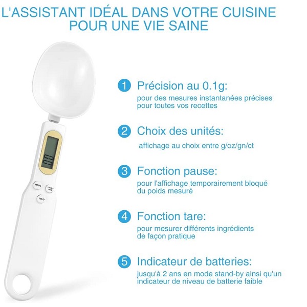 Balance cuillère numérique de cuisine, doseuse, mesure