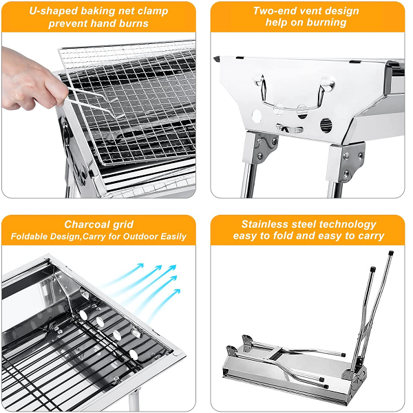 – C’est un bon choix pour un rendez-vous avec vos familles ou vos amis.Vous pouvez organiser un barbecue avec votre famille ou vos amis pendant un pique-nique ou un camping en plein air.Ce barbecue est largement suffisant pour au moins de 5 personnes.Il se plie et se déplie très facilement