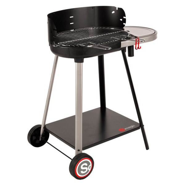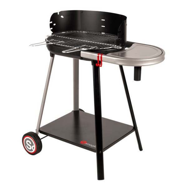 Le barbecue à charbon de bois Vulcano 2000 de SOMAGIC est également équipé d’un pare-vent en acier laqué.