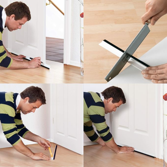 Bas de porte adhésif conçu pour aider à conserver la chaleur du logement et limiter l’entrée des plus petits insectes