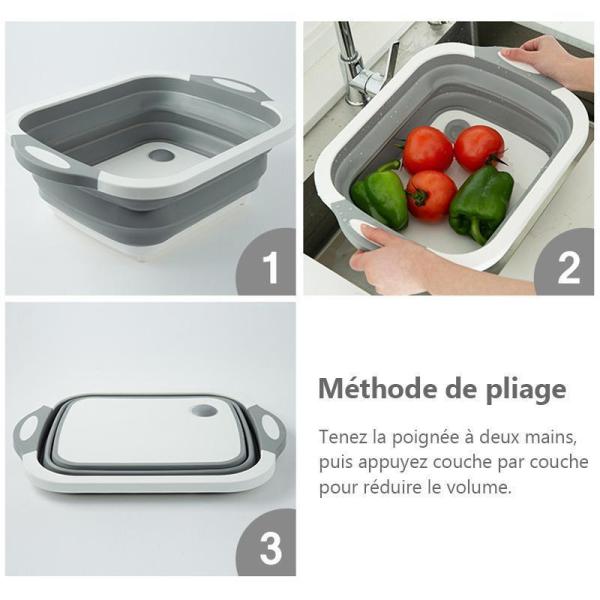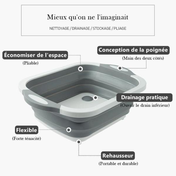 – CARACTÉRISTIQUES: Peut être utilisé comme planche à découper après le pliage ou le panier de lavage de légumes et le panier de vidange après ouverture.