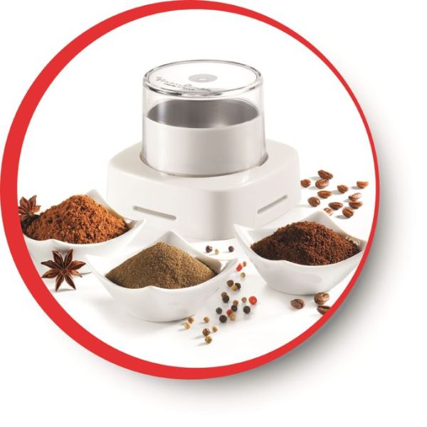– Cet indispensable outil vous servira pour tous types de préparations : soupes, cocktails, milk-shakes, compotes, pâte à crêpes ou à gouffres… hacher les fines herbes, le jambon… moudre le chocolat, les noix…