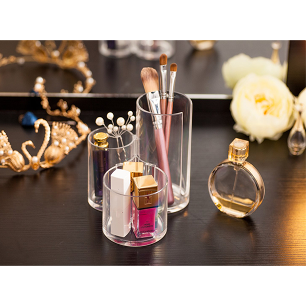 Boite De Rangement Maquillage , Rouges à Lèvres , Crayons , coton – 3 compartiments Avec Couvercle