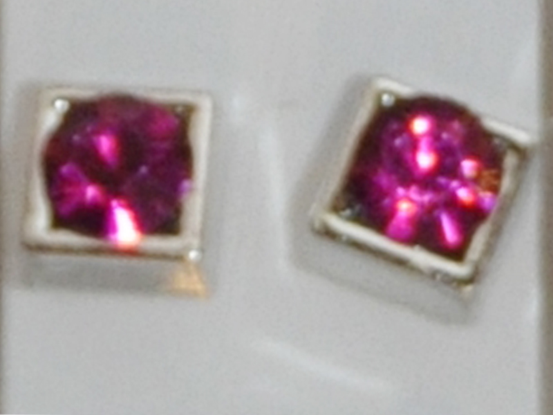 Boucles d’oreilles Carrées Argentée Cristal Rose Fushia