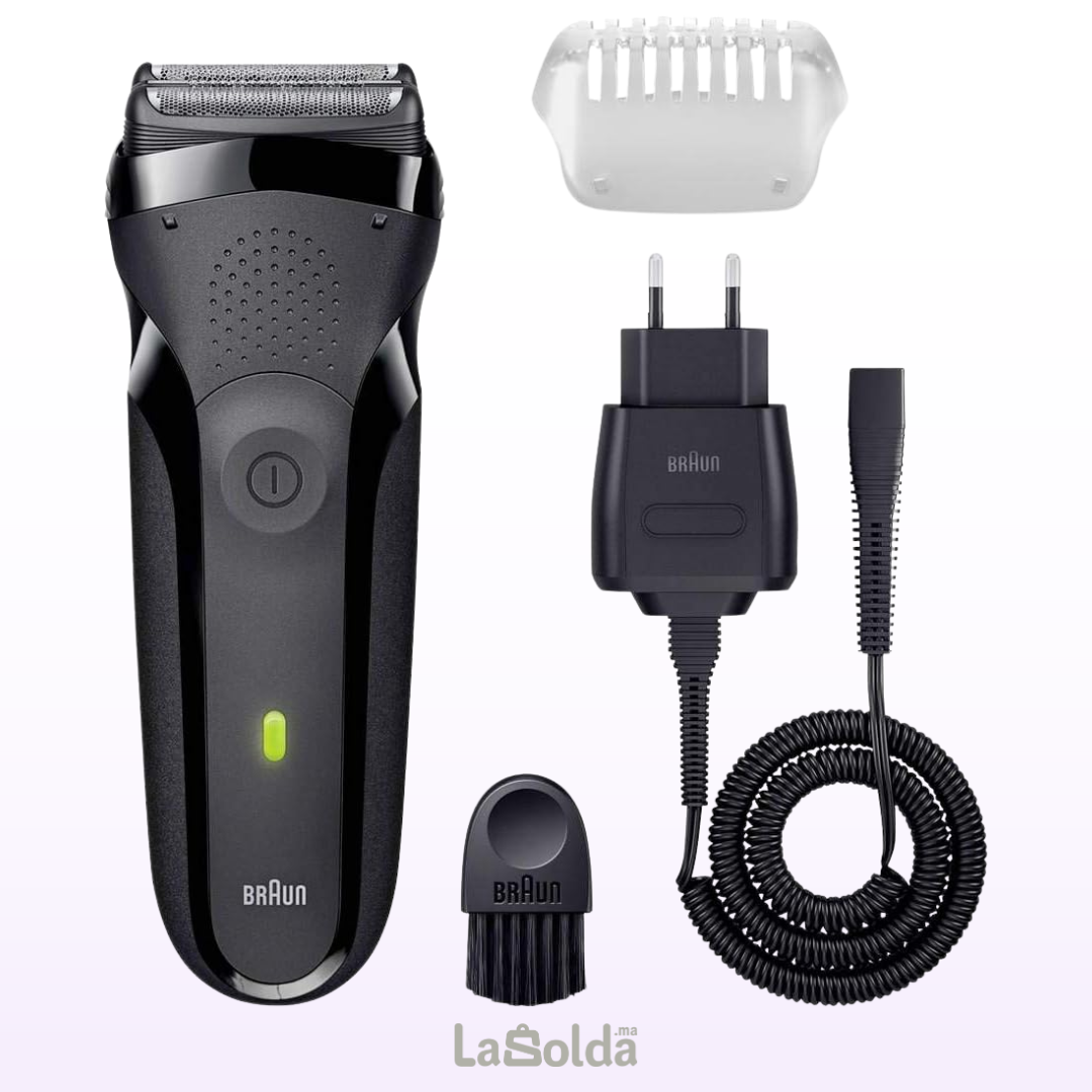 Braun Series 3 est un rasoir électrique pour homme conçu pour offrir un rasage doux, rapide et confortable, tout en respectant votre peau. Grâce à ses 3 éléments de rasage sensibles à la pression, il s’adapte automatiquement aux contours de votre visage pour un résultat net et précis.