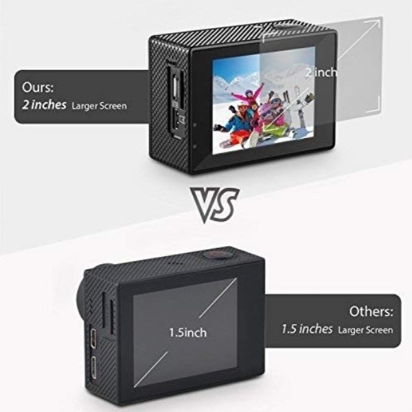 – Cette caméra waterproof est étanche jusqu’à 30 mètres grâce à son boîtier hermétique pour vous permettre de réaliser à la fois des photos d’une résolution de 12 Mégapixels et des films full Hd. En effet, réalisez des films de haute qualité avec une résolution allant jusqu’à 1080p. De plus, grâce à sa vision grand angle à 170° vous ne raterez aucun détail de vos activités sportives et la caméra captera le plus de lumière possible pour un rendu d’une excellente qualité.