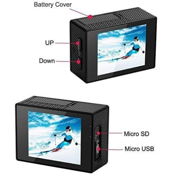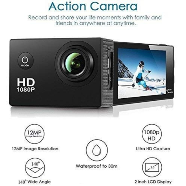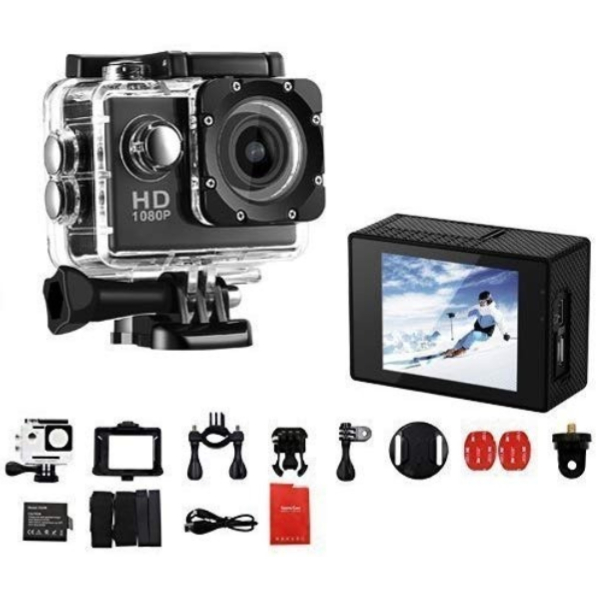 Caméra Sport étanche 30m, Full HD 1080p, 12MP, 18 accessoires