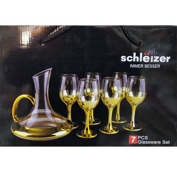 Carafe A Vin Et Ses 6 Verre Tulipe Dorée