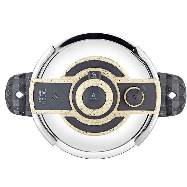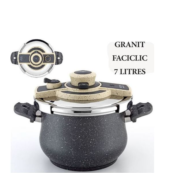 Une cuisine saine rapide et parfaitement délicieuse avec cette Cocotte Minute en granit de couleur grise.avec ouverture et fermeture en un seul clic.