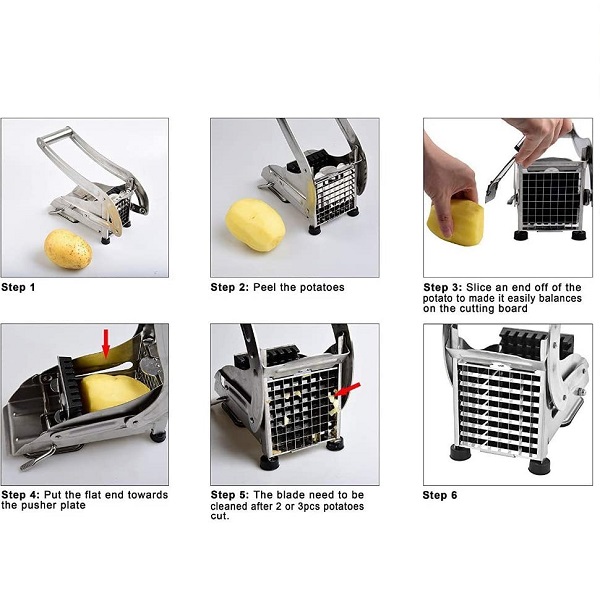 Vous en avez marre de couper la pomme de terre avec un couteau de cuisine, & nbsp; gaspille du temps et des efforts? Eh bien, procurez-vous ce coupe-pommes de terre en acier inoxydable! Nul besoin de passer beaucoup de temps à couper les pommes de terre, ce produit peut vous aider à les couper en une seconde. Cela vous donne & nbsp; pomme de terre en tranches qui est beaucoup plus petite que vous pourriez obtenir en coupant à la main. Fabriqué en acier inoxydable de qualité, durable, ne rouille jamais et bon pour la santé. C’est absolument un gain de temps et vous incite à faire des plats de pommes de terre.