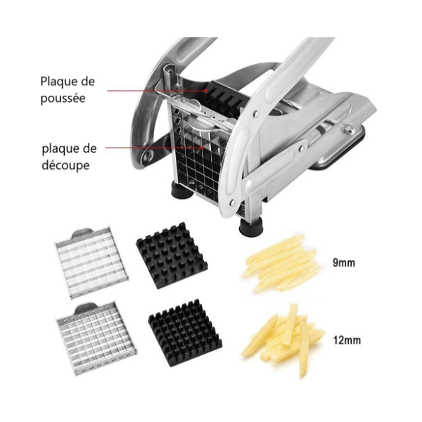 – Facile à utiliser: la conception ergonomique utilise l’effet de levier pour accueillir facilement même les pommes de terre non pelées.