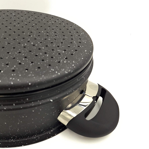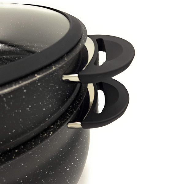 • Couscoussier Façon Pierre Cuiseur/Vapeur de Haute Qualité avec Joint D’étanchéité et Couvercle en Verre trempé