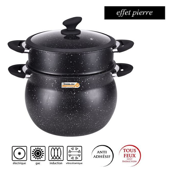 Couscoussier Effet Pierre Et Couvercle en Verre