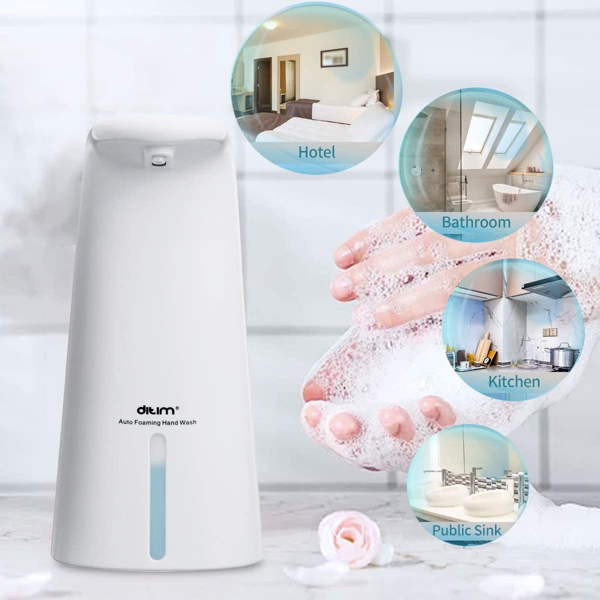 Le capteur infrarouge détecte votre main aussi loin que 2,3 pouces, plus pratique et respectueux de l’environnement.Vous pouvez également appuyer sur le bouton pour allumer / éteindre. Maintenant, vous n’avez plus besoin de nettoyer le savon qui s’est accumulé autour de la bouteille sur l’évier ou de désinfecter la pompe