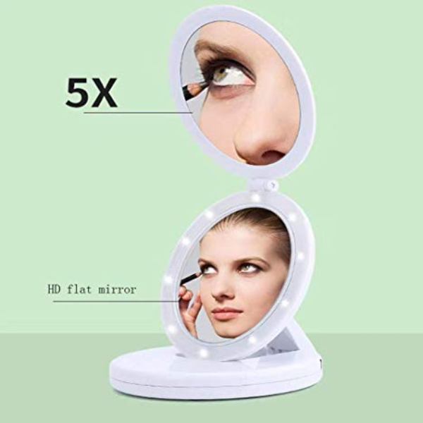 Remarque: le miroir grossissant 5X est un miroir grossissant. Vous devez donc le tenir jusqu’à 10 pouces de votre visage pour obtenir une image nette