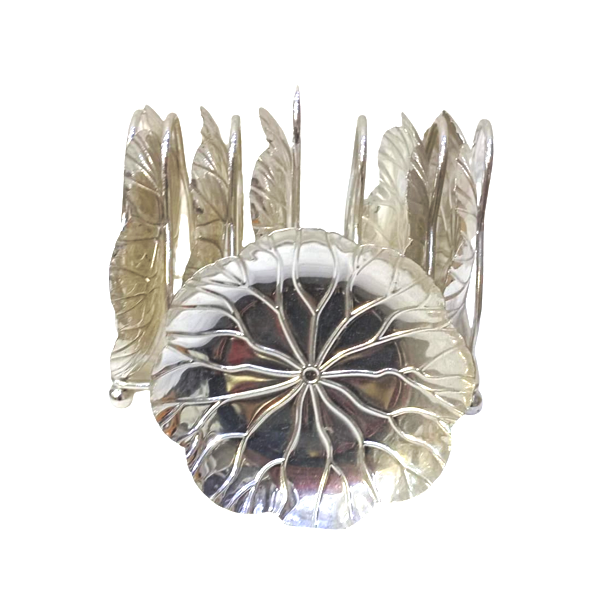 • COMPOSÉ DE 6 PETITES ASSIETTES ET UN SUPPORT EN CUIVRE