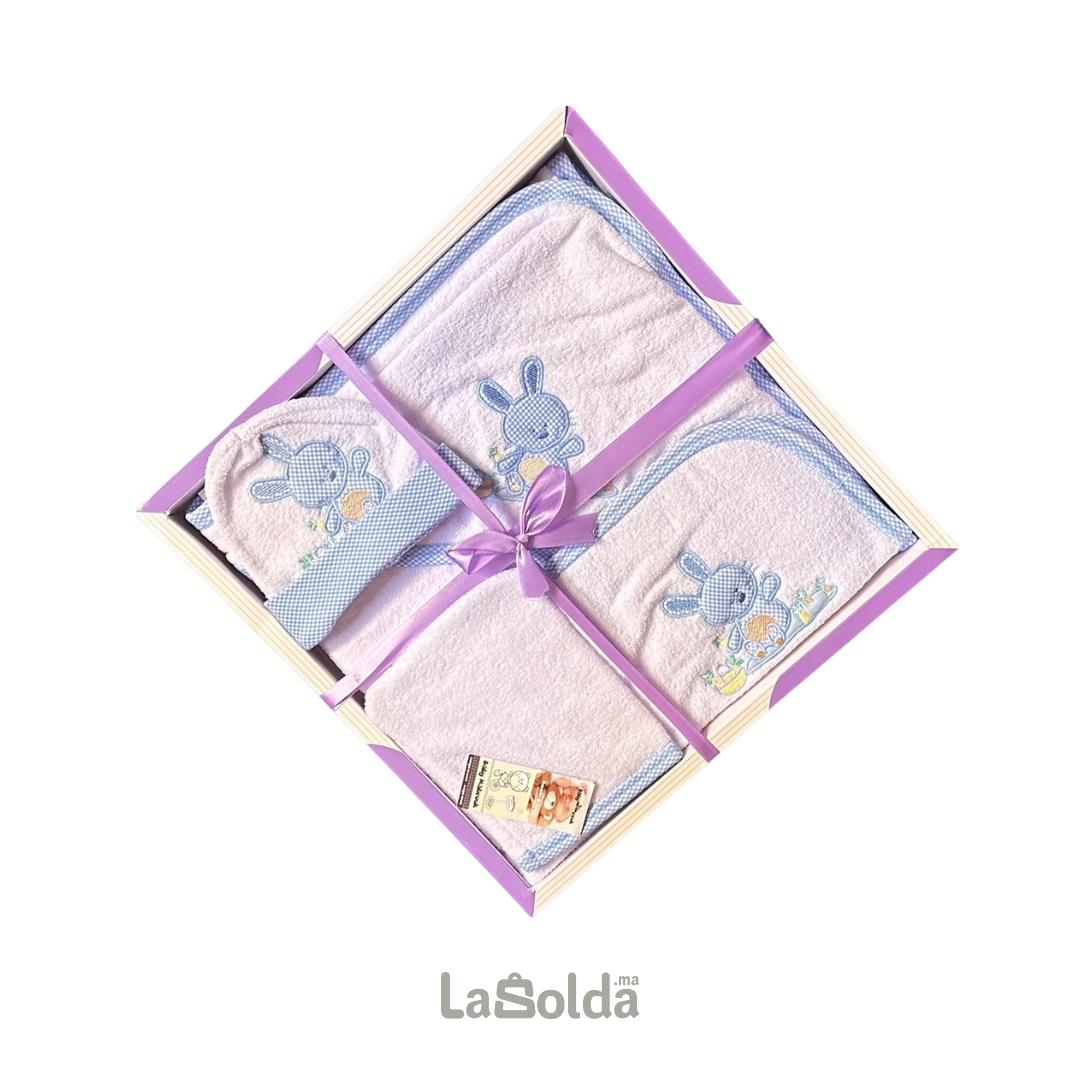 Ensemble de bain bébé lapin bleu – Coffret 4 pièces
