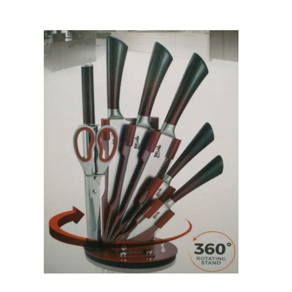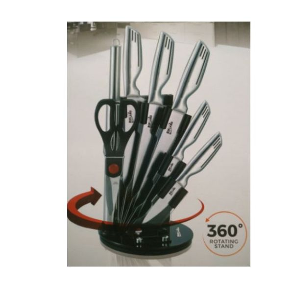 Ensemble De 5 Couteaux En Inox Avec ciseaux , fusil et support pivotant