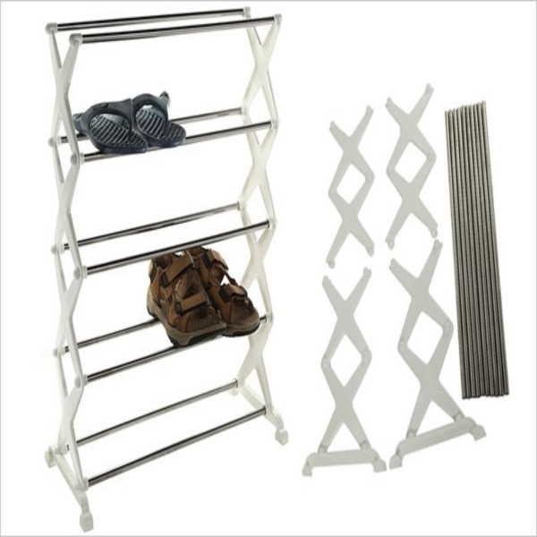 – Étagère à Chaussures “Accordéon” 5 Niveaux Inox/Plastique