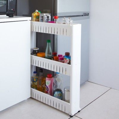 Cette desserte blanche sur trois niveaux est idéale pour un gain de place dans votre cuisine.