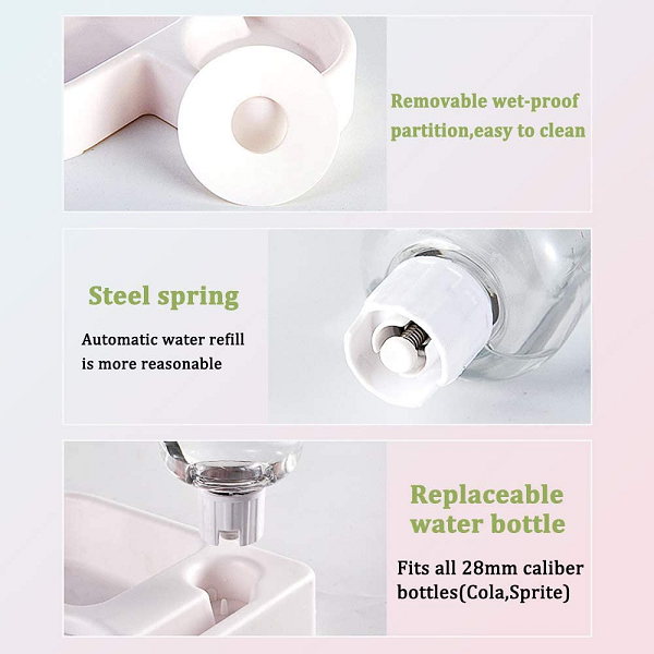 • √【Distributeur d’eau pour animaux de compagnie 2 en 1】 Ce distributeur croquettes se compose d’un bol à aliments et d’un bol à eau, et est équipé d’une bouteille d’eau de grande capacité de 500 ml qui peut automatiquement fournir de la nourriture et de l’eau. En utilisant ce abreuvoir automatique, vous pouvez économiser plus de temps et d’espace, donc ce bol pour animaux de compagnie est un bon choix pour les animaux de compagnie.