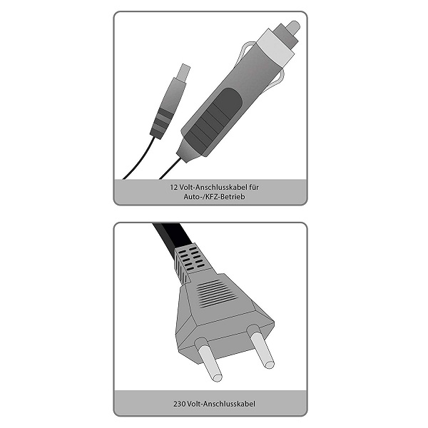 – Câble de raccordement 12 V Câble pour utilisation en voiture