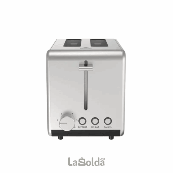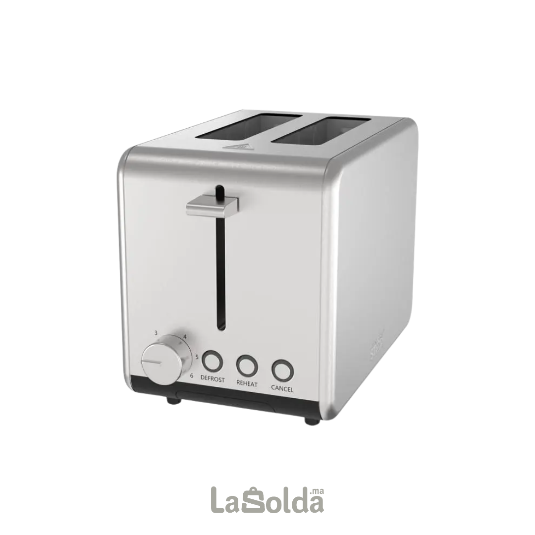 L’appareil est équipé de 2 fentes larges pouvant accueillir des tranches de pain jusqu’à 120 × 120 mm. Son corps en acier inoxydable garantit solidité et longévité, tout en apportant une touche moderne à votre cuisine.