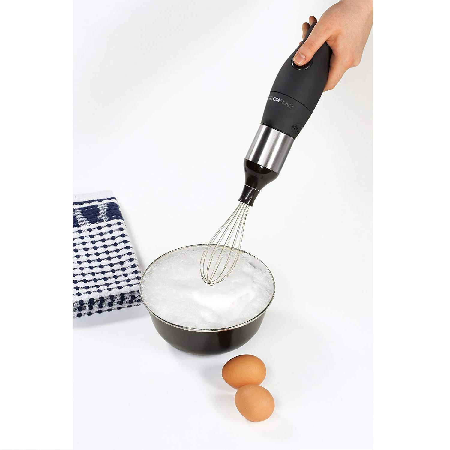 Pétrir, mélanger et mixer n’a jamais été aussi facile et rapide! Le set mixeur Clatronic comprend: un mixeur plongeur, un blinder et un fouet!