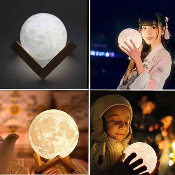Allumer/éteindre la lampe de lune, quand la lampe est éclairée, vous pouvez toucher l’interrupteur pour modifier la couleur de lampe De plus, presser l’interrupteur un peu de temps pour changer la luminosité de la lampe