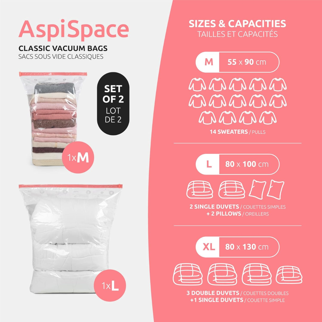 Lot De 2 Sacs De Rangement Sous Vides 55x90cm / 80x100cm