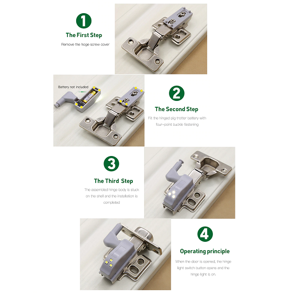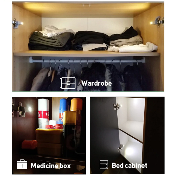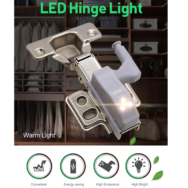 nstallez ces lampes à charnière LED dans un placard ou une armoire pour profiter d’un éclairage automatique quand vous ouvrez la porte. Pas besoin de percer des trous pour faire passer des câbles à travers votre meuble ; ces lampes LED à piles se vissent simplement sur les charnières de la porte.