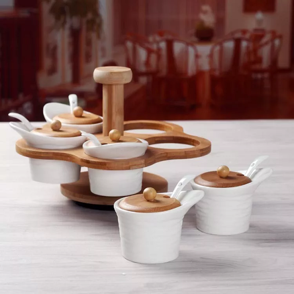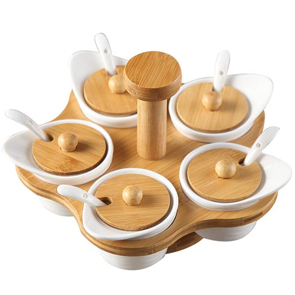 - Lot de 5 pots à épices en céramique pour épices, herbes, sucre, thé, café…