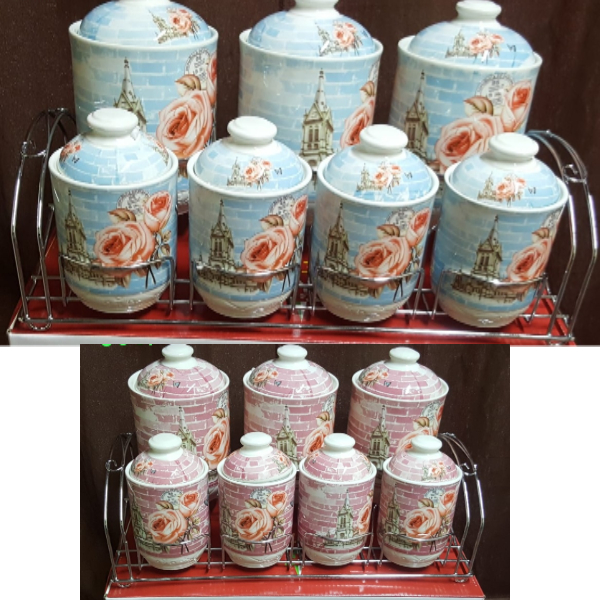 – Lot De 7 Pots En porcelaine : sucre, farine, café, épices, thé…