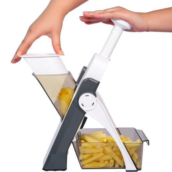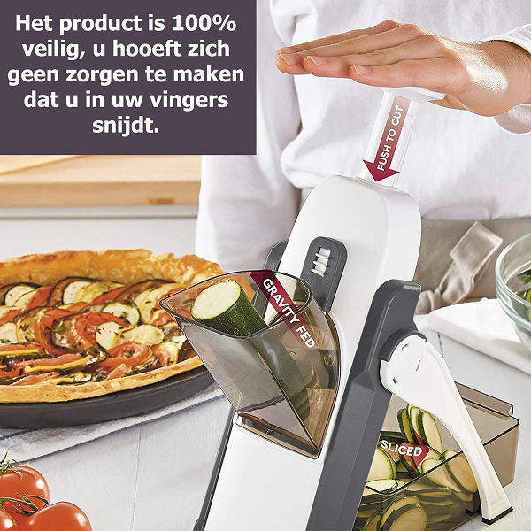 Sûr et pratique : avec sa couleur blanche et Gris, il devient un choix préféré pour la plupart des cuisines. Base antidérapante assurant la stabilité sur une table ou sur le comptoir de cuisine. Il contient le protège-doigt qui protège votre doigt de la lame tranchante, vous donnant une utilisation sûre par rapport à un couteau.