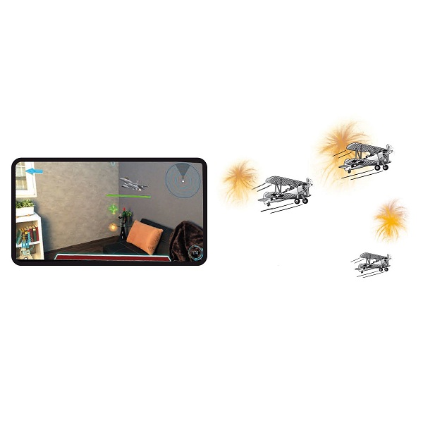 Vous pouvez jouer ensuite aux différents jeux de l’application, en réalisant des mouvements vers le haut, la droite, la gauche ou vers le bas en appuyant sur la gâchette de tir de l’appareil.