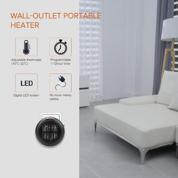 1. La conception murale vous permet de brancher l’appareil de chauffage dans le Walloutlet et de l’utiliser.