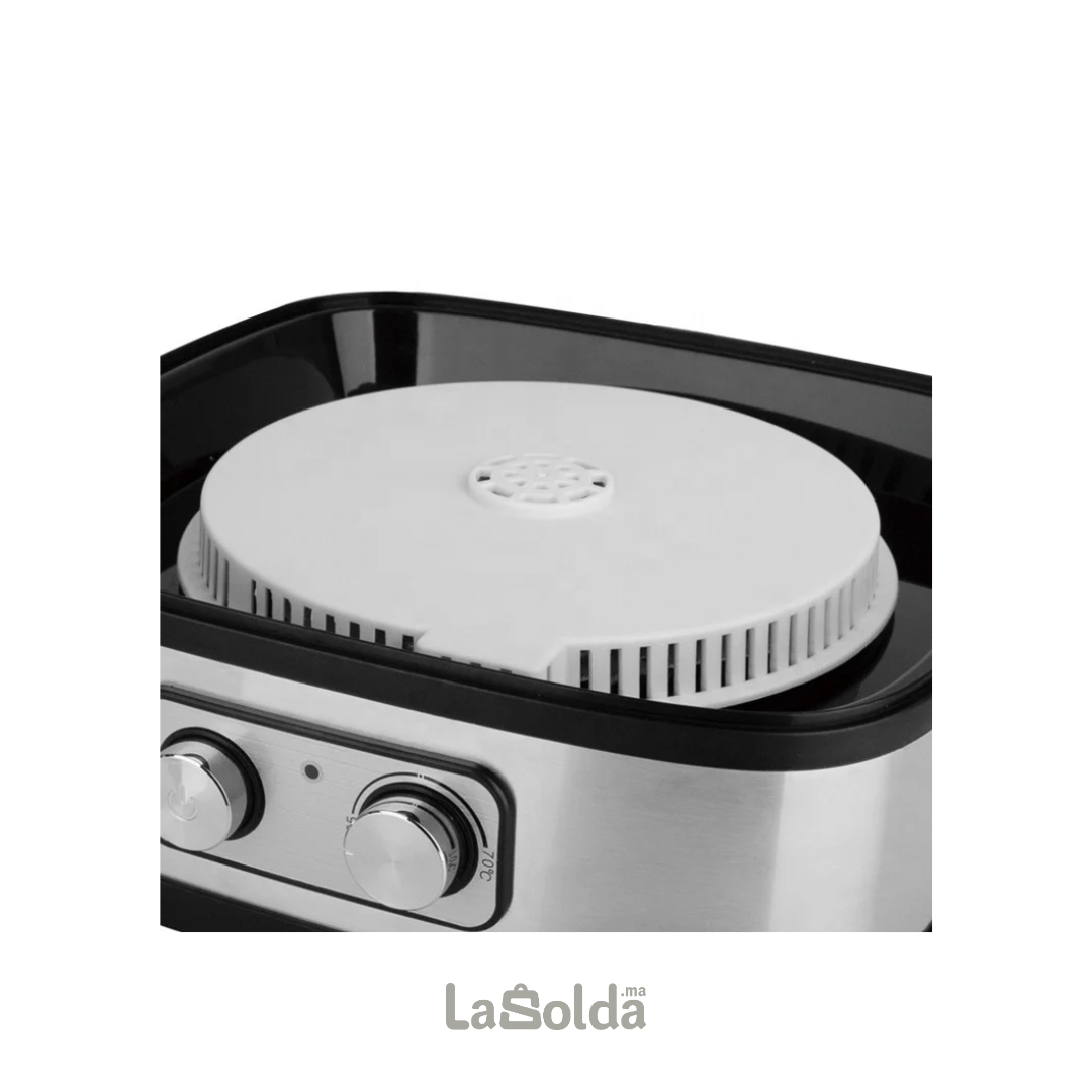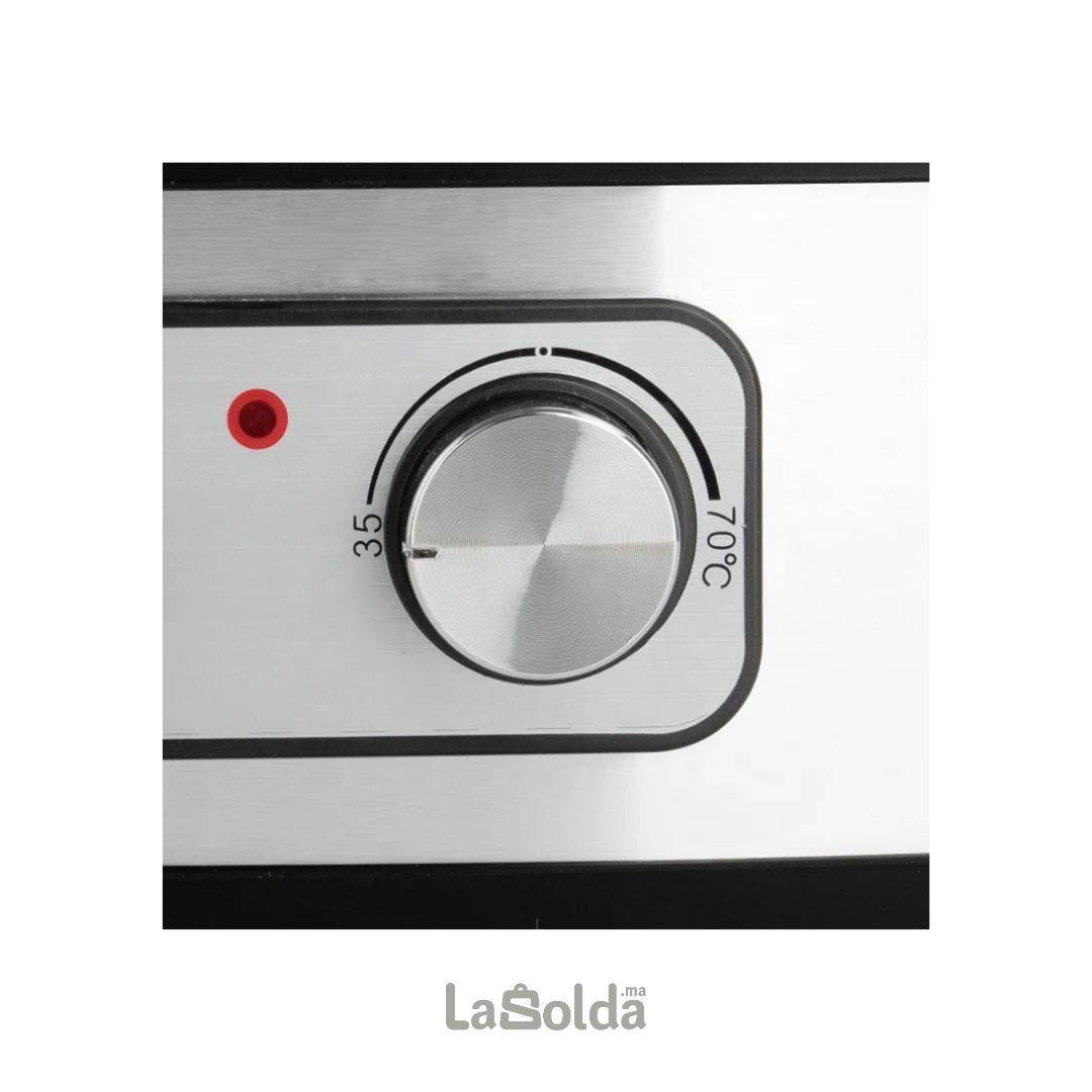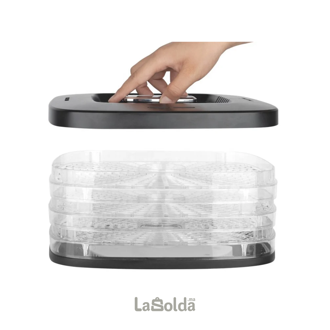 Doté de 5 plateaux transparents empilables, vous pouvez sécher plusieurs types d’aliments en même temps tout en visualisant leur état. La structure en acier inoxydable garantit durabilité et hygiène. Son design compact s’adapte parfaitement à toutes les cuisines, et son ventilateur intégré assure une répartition uniforme de l’air chaud sur tous les niveaux.