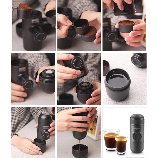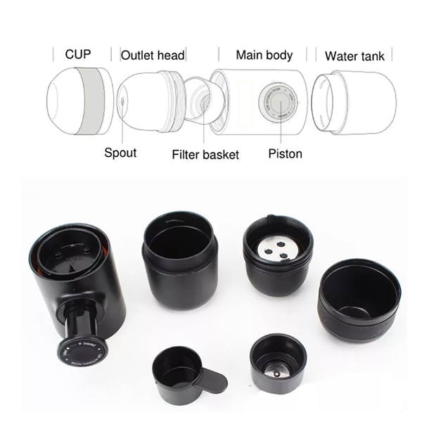 – PRATIQUE & MANUEL – Minipresso est actionné à la main, pas de batterie, pas besoin d’électricité. Vous êtes libre de préparer des boissons au café que vous aimez.