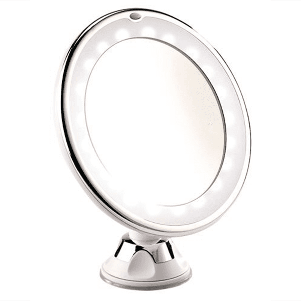 – Miroir grossissant rond avec réglette à LED et fixation à ventouse .