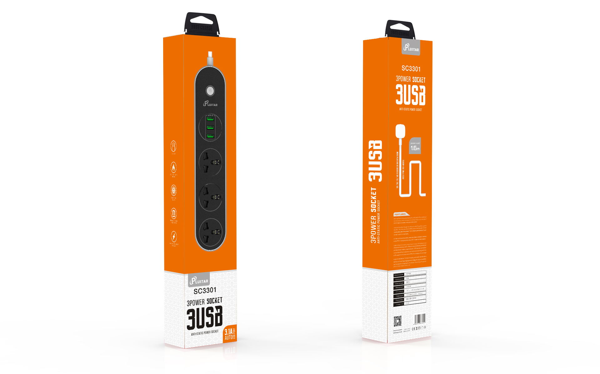 UGS Multiprise intelligent avec 3 Prises +3 Ports USB 1.6M Catégories , , ,