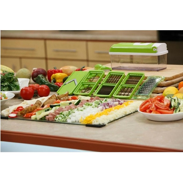 – Mandoline Nicer Dicer 7 Lames en plastique alimentaire pour découper vos fruits et légumes intelligemment.
