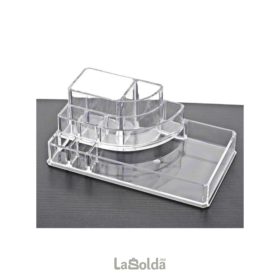 Apportez de l’ordre et de l’élégance à votre espace beauté avec cet organisateur de maquillage en acrylique transparent. Conçu pour allier style et praticité, il vous permet de garder à portée de main tous vos essentiels : rouges à lèvres, vernis à ongles, pinceaux de maquillage, bijoux et autres accessoires.