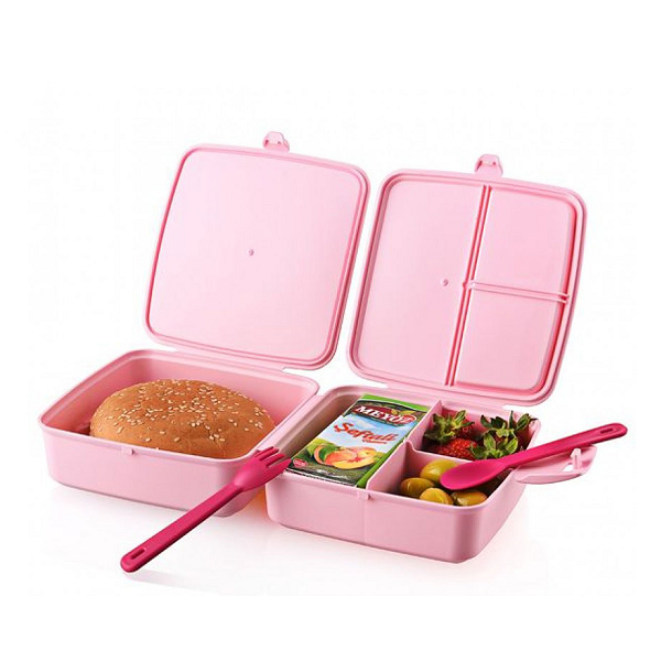 Le Pack Contient Une Boîte à Repas 4 Compartiments + Fourchette Et Cuillère + Gourde